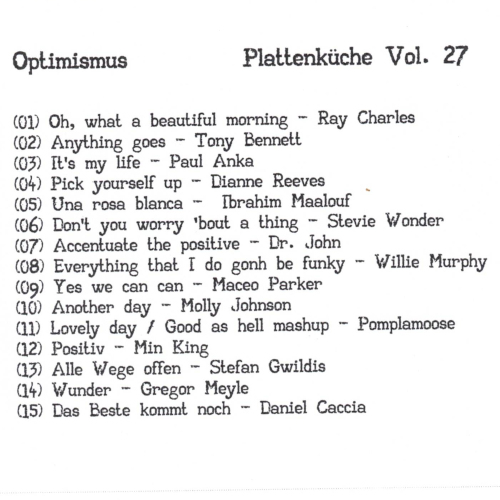 Optimismus - Plattenküche 27 "Each time I find myself - flat on my face I pick myself up and get - back in the race" Frank Sinatra That's life SL CA DM