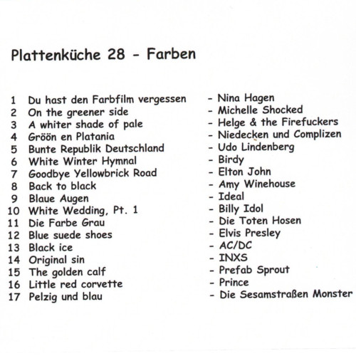 Farben - Plattenküche 28 "So goodbye yellow brick road where the dogs of society howl" Elton John Goodbye yellow brick road CA DM SL